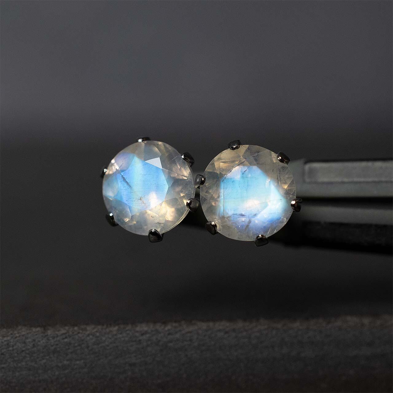 現在このピアスで使用しているのはムーンストーン(月長石)ではなくラブラドライト(曹灰長石)という石になります。