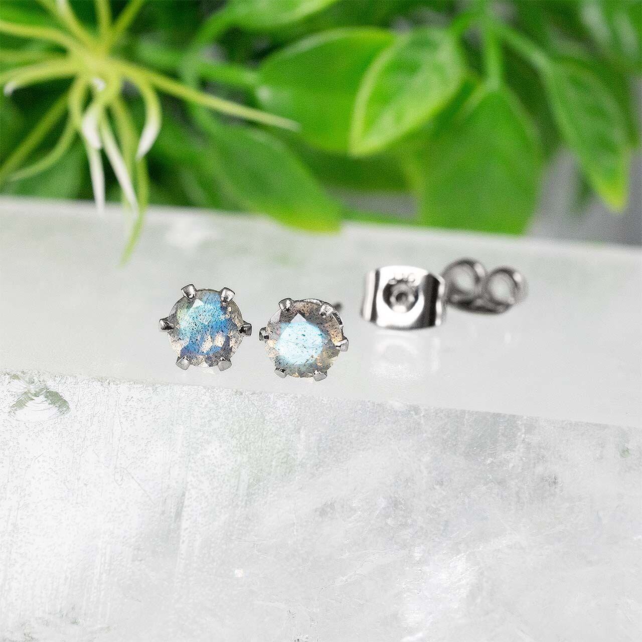 ラブラドライト・ピアス 5mm(1ペア) No.5