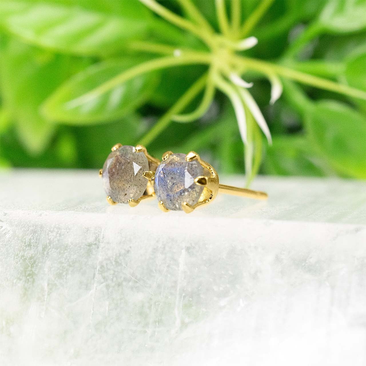 ラブラドライト・ピアス 5mm(1ペア) No.6
