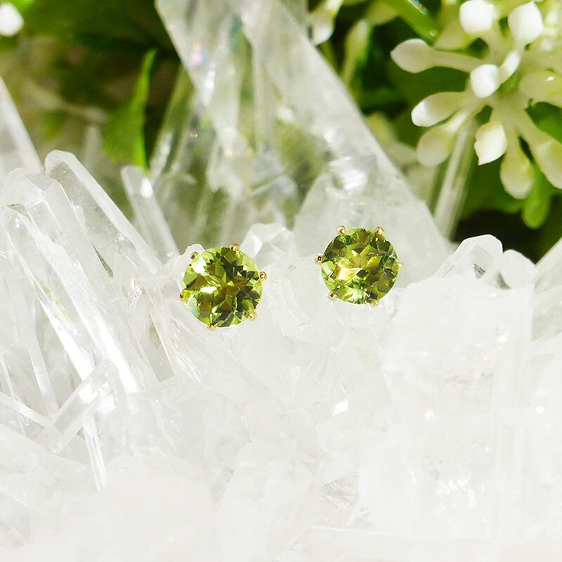ペリドットは複屈折率がとても高い石で入ってきた光が二重になって反射されるため、とても明るく輝いて見える石です。