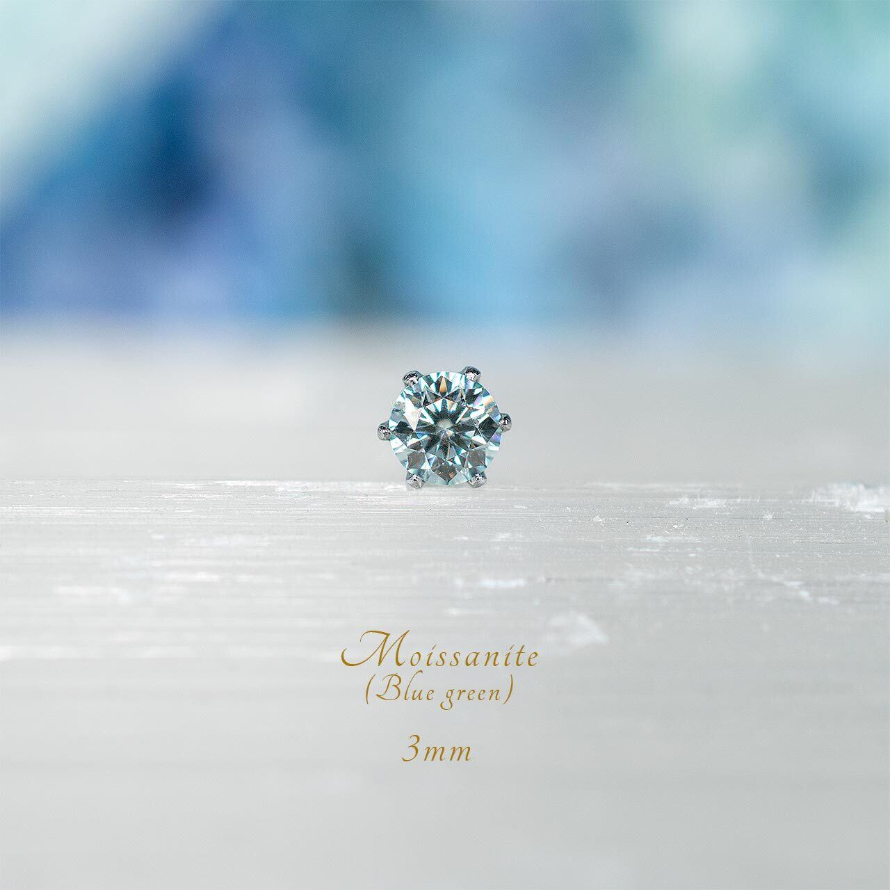 モアッサナイト(ブルーグリーン)・ピアス 3mm(片耳)