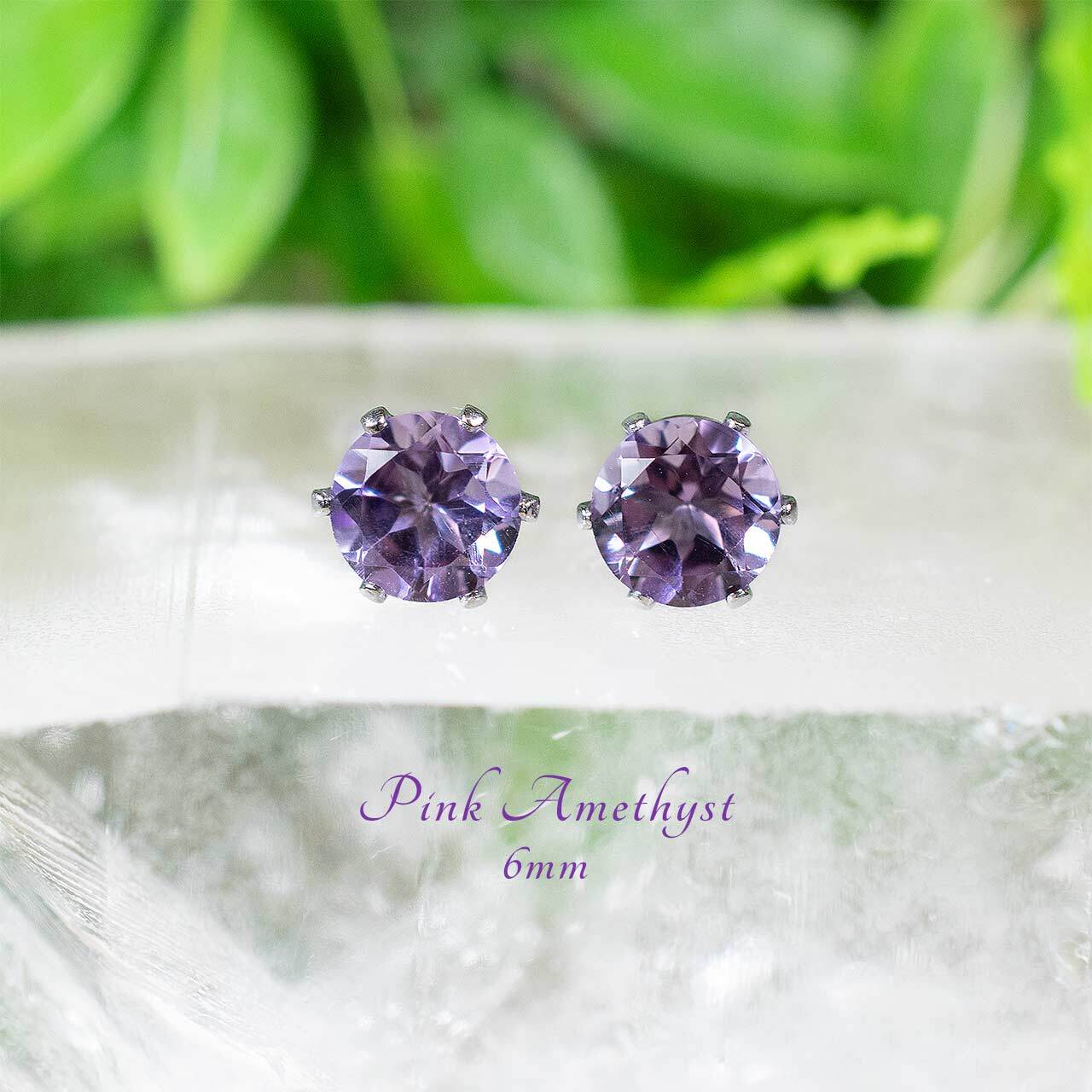 ピンクアメジスト・ピアス 6mm(1ペア)